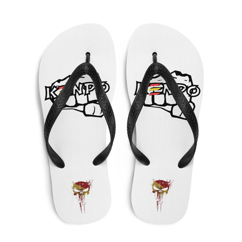 ¡Prepárate para un verano aventurero y sin preocupaciones con un par de chanclas coloridas creadas solo para kenpocas! La suela de goma está forrada con una tela suave para que te sientas cómodo dondequiera que te lleve el día. • Suela de goma • Forro de tela 100% poliéster personalizable • Correas de caucho negras en forma de Y • Estilo de poste del dedo